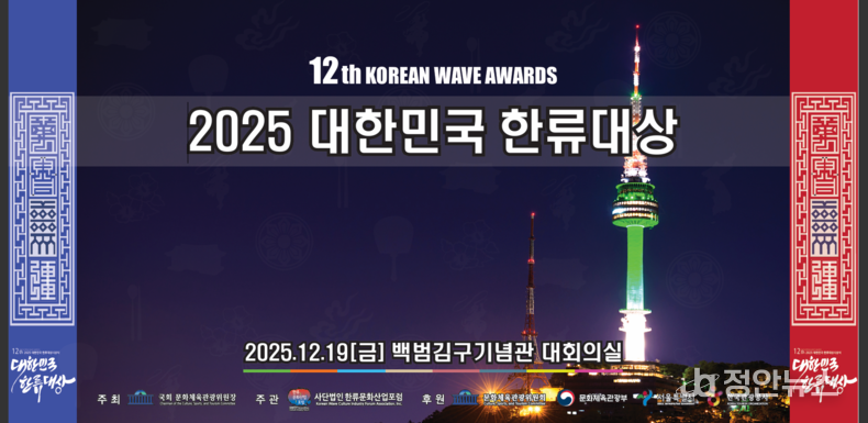 국회 문화체육관광위원장(국회의원 김교흥)이 주최하고, 고품격 한류 열풍의 지속을 견인·선도해 온 사단법인 한류문화산업포럼(회장 안대벽)이 주관하는 ‘2025 제12회 대한민국한류대상 시상식(이하 ‘한류대상시상식’)’이 12월 19일(금) 오후 4시, 서울 백범김구기념관 대회의실에서 개최된다.