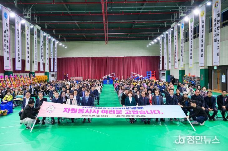 정안뉴스 김재홍 기자 | 남해군은 지난 19일 국민체육센터에서 2층 다목적체육관에서 제20회 자원봉사자의 날을 기념해 ‘2025년 자원봉사자 한마음대회’를 성황리에 개최했다.
