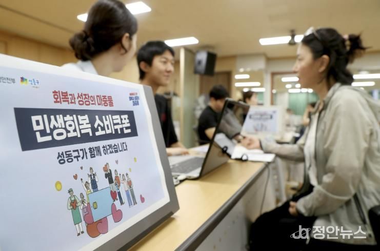 성동구는 구민 누구나 불편 없이 민생회복 소비쿠폰을 신청하고 사용할 수 있도록 사업 초기부터 전담 TF를 구성하여 체계적인 준비에 나섰다. 동주민센터 전체에는 전담 접수 창구를 설치하고 사전 모의훈련을 실시하는 등 신속한 지급 시스템을 마련했다.