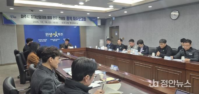 정안뉴스 안정주 기자 | 파주시는 지난 19일, 중대산업재해 예방 및 재발 방지 실행 체계를 마련하기 위한 '파주시 중대산업재해 예방 전문 컨설팅 용역' 착수보고회를 개최했다. 시는 이번 연구용역을 통해 파주시의 안전보건관리체계를 총체적으로 점검하고 재정립해 중대산업재해 예방에 총력을 기울여나간다는 계획이다.