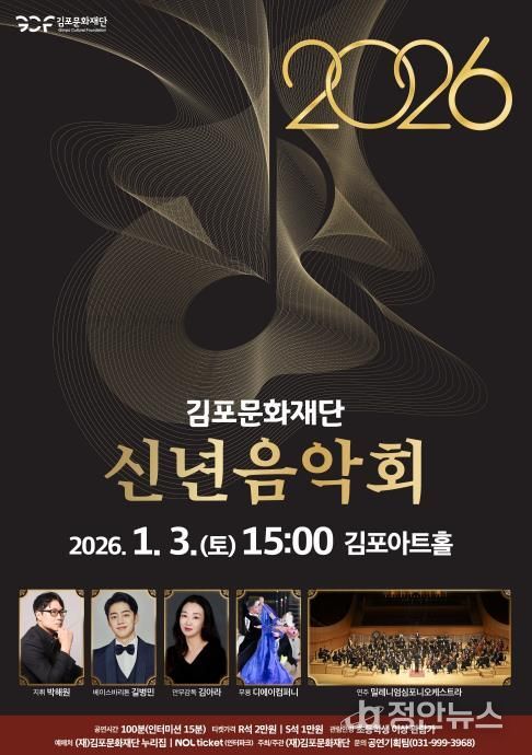 정안뉴스 안정주 기자 | (재)김포문화재단이 새해 첫 무대로 내년 1월 3일 김포아트홀에서 '2026년 김포문화재단 신년 음악회'를 개최한다고 밝혔다.