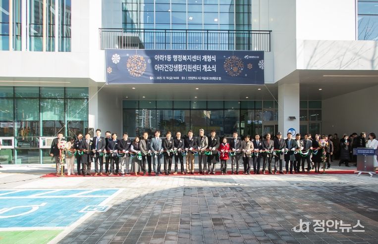정안뉴스 안정주 기자 | 인천 서구는 지난 19일 검단신도시 생활SOC 복합청사에서 아라1동 행정복지센터 개청 및 아라건강생활지원센터 개소 기념식을 개최했다.