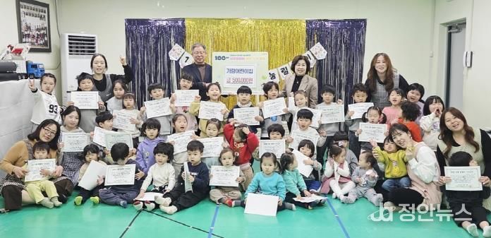 정안뉴스 안정주 기자 | 의정부시 장암동주민센터는 12월 19일 가람어린이집이 원아들이 1년 동안 모은 용돈 50만 원을 기탁하며 ‘100일간 사랑릴레이 배턴 잇기’에 동참했다고 밝혔다.