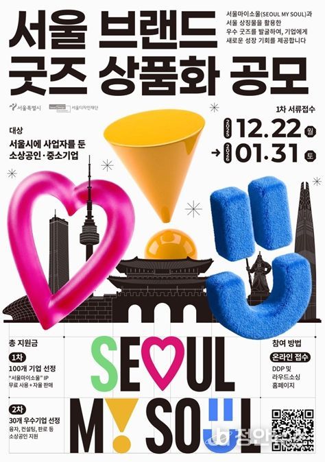 공모 주제는 서울 도시브랜드 ‘서울마이소울’과 경복궁, 남산타워와 같은 ‘서울 상징물’을 활용한 상품 개발로, 서울의 정체성과 매력을 담은 생활형 상품이 대상이다.