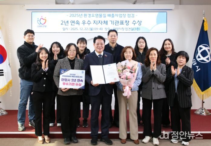 정안뉴스 안정주 기자 | 안양시는 경기도가 주관하는 ‘2025년 환경오염물질 배출사업장 관리평가’에서 지난해에 이어 2년 연속 우수기관에 선정되고, 경기도지사 표창을 받았다고 22일 밝혔다.