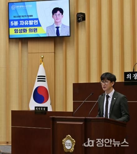 정안뉴스 안정주 기자 | 광주 서구의회 임성화 의원이 19일 제336회 제2차 정례회 제3차 본회의에서 ‘5분 자유발언’을 통해 '광천동 시민아파트 5.18 사적지 지정을 위한 역량 결집'을 요청했다.