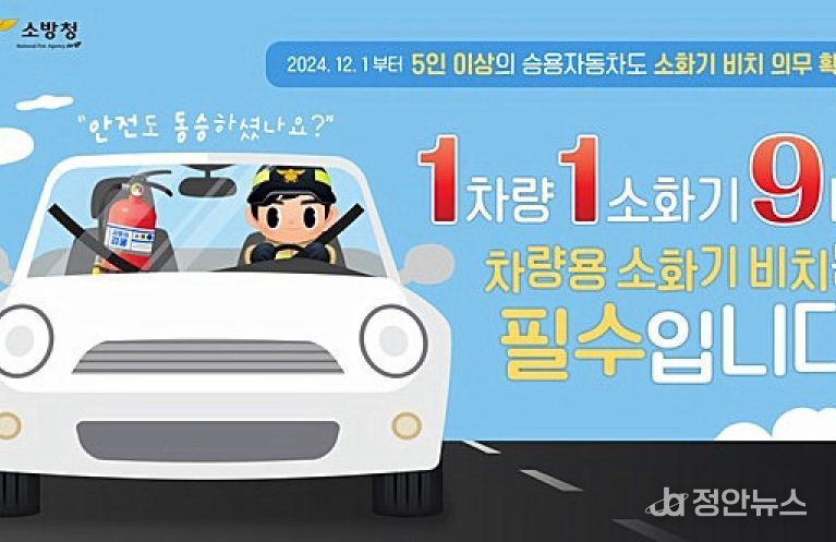 정안뉴스 황도연 기자 | 천안서북소방서(서장 김종욱)는 차량 화재 발생 시 신속한 초기 대응을 위해 차량용 소화기 설치를 적극 당부했다.
