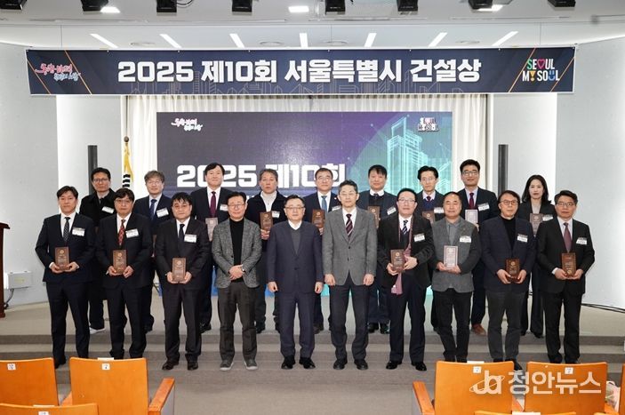 정안뉴스 안정주 기자 | 서울시는 22일 오후 3시 서소문청사 후생동 강당에서 ‘2025년 제10회 서울특별시 건설상’ 시상식을 개최하고, 올 한 해 서울시 도시인프라 확충, 건설기술과 산업 발전에 기여한 건설 기술인 및 단체 16인을 수상자로 선정했다.