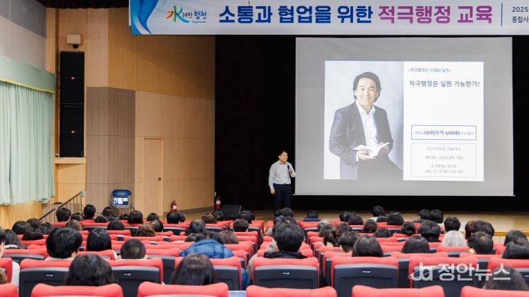 정안뉴스 김재홍 기자 | 합천군은 23일 합천군종합사회복지관 3층 대강당에서 전 직원을 대상으로 ‘2025년 적극행정 교육’을 오전·오후 2회차로 나누어 실시했다.