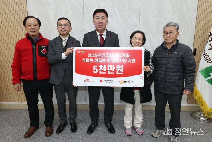 이날 임시청사 직지실에서 개최된 기탁식에는 이범석 청주시장, 박호현 SK하이닉스㈜ 부사장, 이민성 사회복지공동모금회 회장, 조경옥 사랑나눔푸드뱅크 대표, 박종필 청원기초푸드뱅크 팀장 등이 참석했다.