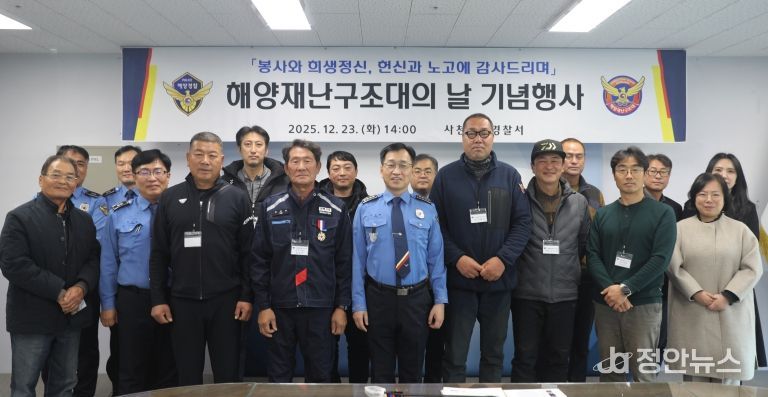 정안뉴스 김재홍 기자 | 사천해양경찰서는 12월 23일, ˹해양재난구조대의 설치 및 운영에 관한 법률˼이 2025년 1월 3일 시행된 이후 처음 맞이하는 해양재난구조대의 날 기념행사를 개최했다고 밝혔다.