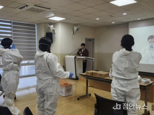 정안뉴스 안정주 기자 | 동두천시보건소는 지난 12월 22일 직원들을 대상으로 감염병 발생 상황에 대비한 개인보호구(Level D) 착·탈의 실습 교육을 실시했다.