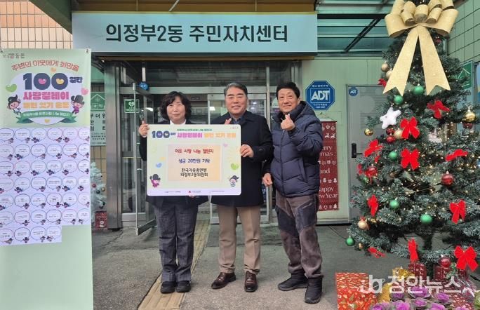 정안뉴스 안정주 기자 | 의정부시 의정부2동주민센터는 12월 23일 한국자유총연맹 의정부2동위원회가 ‘100일간 사랑릴레이 배턴 잇기’에 동참해 취약계층을 위한 성금 20만 원을 전달했다고 밝혔다.
