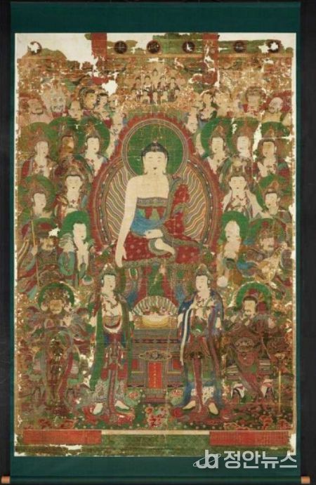 정안뉴스 안정주 기자 | 국가유산청은 현재 전하는 경수연도(장수 축하·기원 잔치인 경수연을 그린 그림) 중 유일한 원본인 '신중엄경수도첩'을 비롯해 '영산회상도', '묘법연화경 권3', '구례 화엄사 동종', '고려 수월관음보살도', '‘영축사’명 영산회상도'까지 총 6건을 국가지정문화유산 보물로 각각 지정했다.