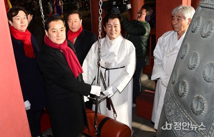 정안뉴스 김재홍 기자 | 진주시는 31일 밤 진주성 호국종각 일원에서 ‘2025 제야의 종 타종 행사’를 갖고 시민들과 함께 2026년 새해를 맞이한다.