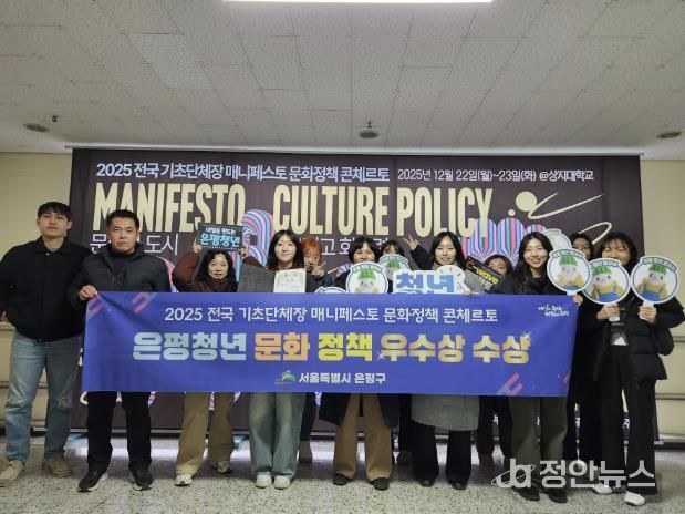 정안뉴스 안정주 기자 | 서울 은평구는 지난 22일부터 23일 이틀간 상지대학교에서 열린 ‘제1회 2025 기초단체장 매니페스토 문화정책 콘체르토’ 본선에서 우수상을 수상했다고 밝혔다.