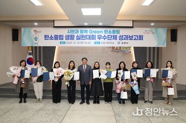 정안뉴스 김재홍 기자 | 김해시는 지난 18일, 시청 대회의실에서 시민 참여로 이뤄진 2025년 탄소중립 생활실천 성과보고회를 개최했다고 밝혔다.