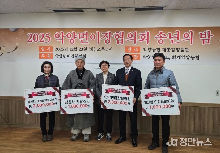 악양면은 이장협의회를 비롯한 여성단체협의회 김선자 회장, 최재인 이장협의회장, 청심사 지담스님, 익명의 기부자 등이 총 700만 원의 기부금을 전달했다고 밝혔다.