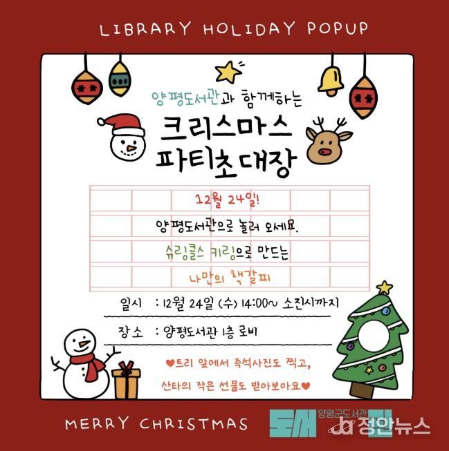 이경희 평생학습과장은 “이번 크리스마스 체험행사를 통해 도서관이 지역 주민이 함께 문화를 즐기는 생활문화 공간으로 자리매김하고 있음을 확인했다”며 “앞으로도 다양한 문화 프로그램을 통해 군민의 문화 향유 기회를 지속적으로 확대하겠다”고 말했다.