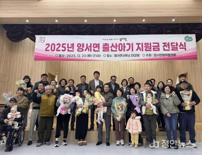 정안뉴스 안정주 기자 | 양서면 방위협의회는 지난 23일 저출산 극복과 출산 장려 분위기 조성을 위해 ‘2025년 양서면 출산아기 지원금 전달식’을 개최했다.