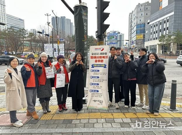 정안뉴스 안정주 기자 | 오산시 세마동행정복지센터는 지난 24일 세마역 인근 유동인구 밀집 지역에서 세마동 지역사회보장협의체 위원, 명예사회복지공무원, 동 직원들과 함께 ‘명예사회복지공무원 제도 홍보 캠페인’을 실시했다고 밝혔다.