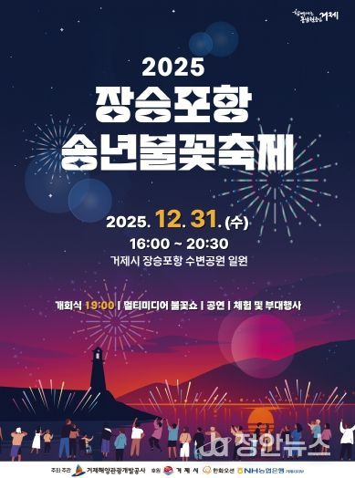 거제해양관광개발공사(사장 지영배)는 오는 31일 거제시 장승포항 수변공원 일원에서‘2025 장승포항 송년불꽃축제’를 개최한다.