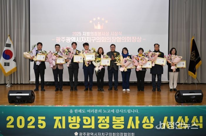 정안뉴스 안정주 기자 | 광주광역시자치구의회의장협의회(회장 김명수)가 26일 광산구청 7층 윤상원홀에서 ‘2025년 하반기 지방의정봉사상’ 시상식을 개최했다.
