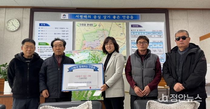 정안뉴스 안정주 기자 | 안중민속5일장상인회는 지난 26일 평택시 안중읍 행정복지센터를 방문해 어려운 이웃을 위한 성금 100만 원을 기부했다.