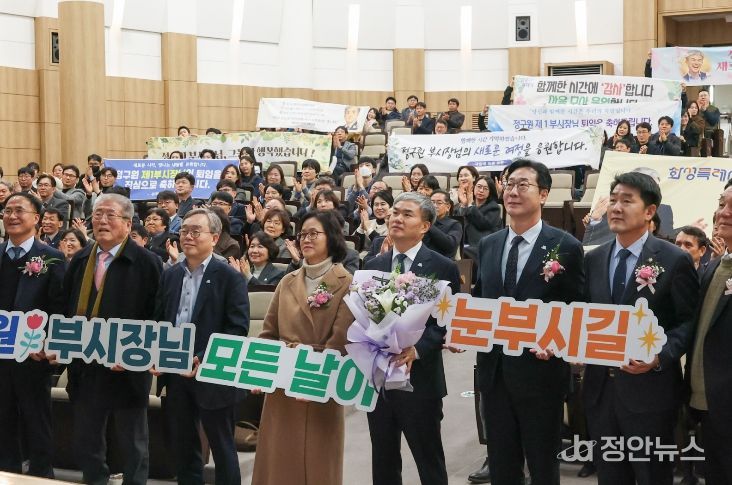 정명근 화성특례시장은 격려사를 통해 “특례시 및 4개 일반구 출범 등 시정 운영 전반을 안정적으로 뒷받침하며 시의 양적·질적 발전을 위해 각고의 노력을 아끼지 않은 정구원 부시장님께 감사드린다”며 “앞으로의 길에도 건강과 건승이 함께하길 바란다”고 말했다.