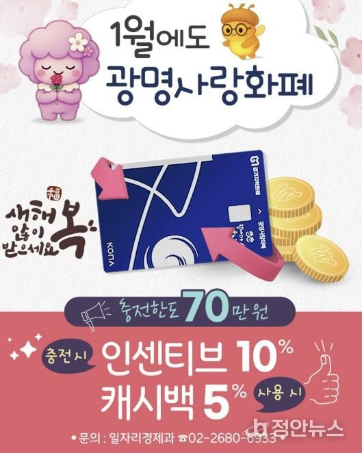 시는 2026년 1월 광명사랑화폐 인센티브 10%와 캐시백 5% 혜택을 지원한다고 31일 밝혔다.