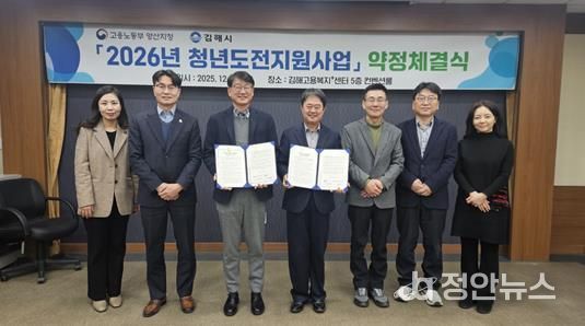 정안뉴스 김재홍 기자 | 김해시는 고용노동부 부산지방고용노동청 양산지청과 2026년 청년도전지원사업 업무약정을 체결하고 구직단념청년의 노동시장 재진입을 위한 협력체계를 본격 가동한다고 31일 밝혔다.
