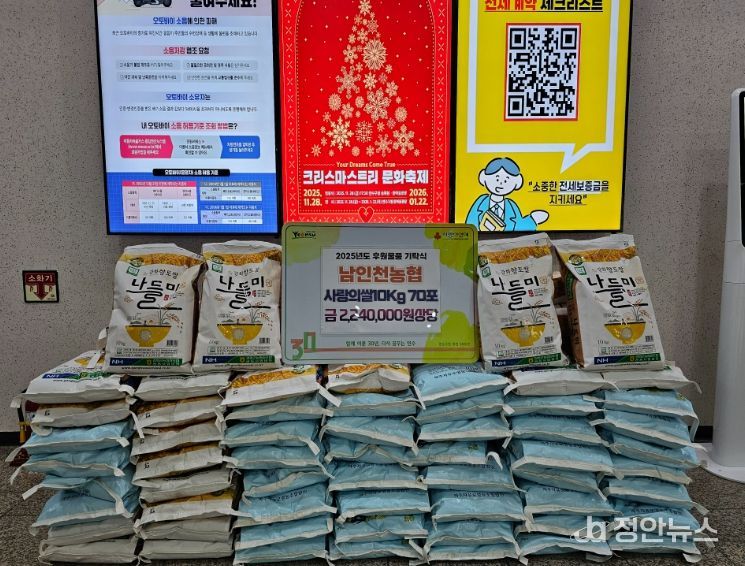 이에 앞서 지난 29일에는 남인천농협(조합장 이태선)이 겨울철 추위와 경제적 어려움으로 이중고를 겪고 있는 소외된 이웃을 돕고, 지역사회 나눔 문화를 확산하기 위해 ‘사랑의 쌀’ 70포(700kg)를 기탁했다.