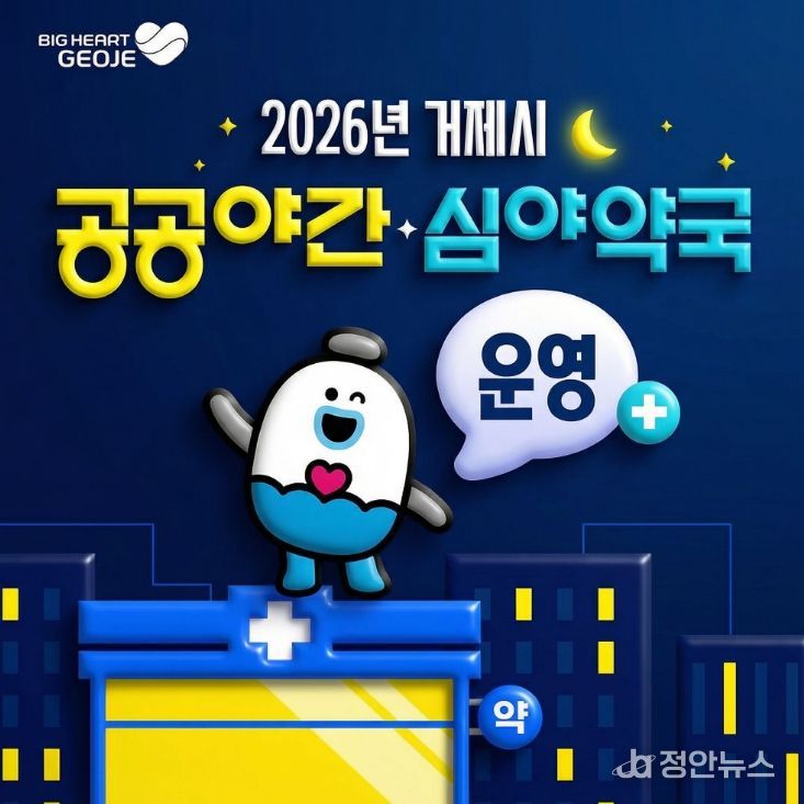 2026년부터는 공공야간・심야약국을 기존 거제프라자약국에서 옥포에 소재한‘따뜻한약국’으로 변경 지정하여 운영한다.