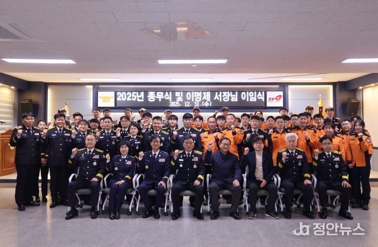 이번 종무식은 이명제 서장을 포함한 소방공무원, 의용소방대연합회장 등 소방가족 60여 명이 참석한 가운데 2025년 한해를 뒤돌아보고 새해 업무 방향에 대한 각오와 결의를 다지는 시간을 가졌다.