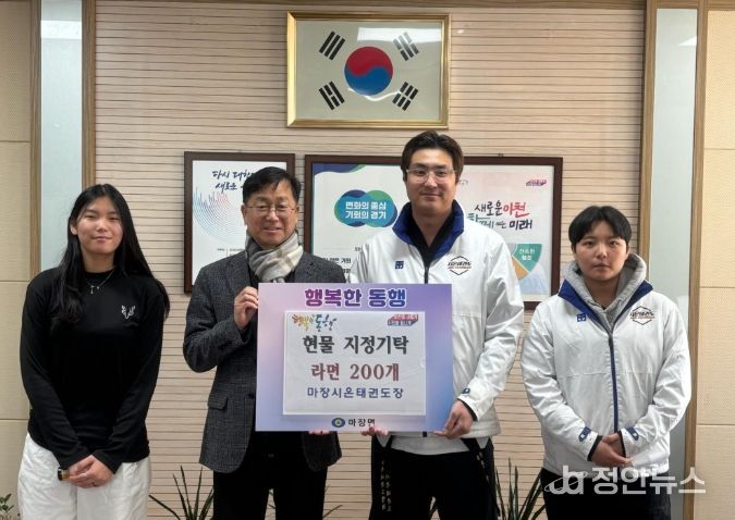 황인동 마장면장은 “아이들과 함께 정성껏 모은 라면을 기부해 주신 마장시온태권도장에 깊이 감사드린다”며 “이번 나눔은 아이들이 나눔의 의미를 배우고 지역사회와 함께 성장하는 소중한 사례로, 기부 물품은 도움이 필요한 이웃들에게 잘 전달하겠다”고 전했다.