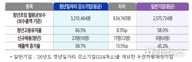 정안뉴스 안정주 기자 | 중소벤처기업부는 31일 고용노동부와 함께 청년고용 실적과 기업경쟁력 등을 갖춘「2026년도 청년일자리 강소기업」 224개소를 선정·발표했다.