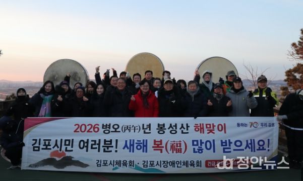 정안뉴스 안정주 기자 | 김포시와 김포시체육회·김포시장애인체육회가 지난 1일 하성면 봉성산에서 ‘2026 봉성산 해맞이 행사’를 개최하고, 시민들과 함께 병오년 붉은 말의 해의 시작을 알렸다. 이번 행사는 새해 첫 일출을 맞이하며 시민 화합과 지역 공동체의 안녕을 기원하기 위해 마련됐다.