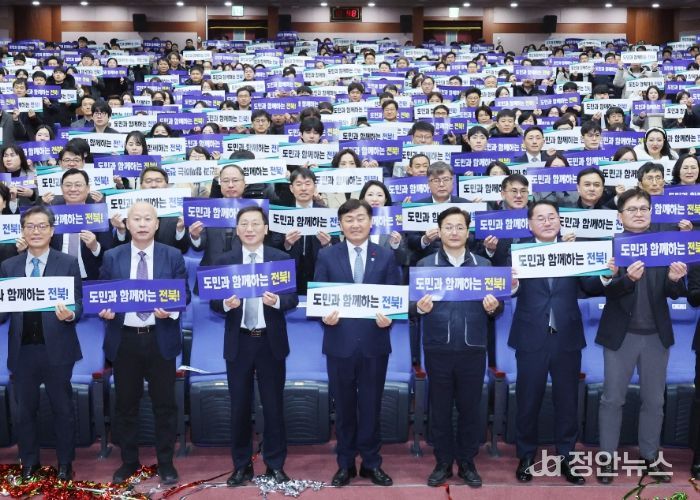시무식 마무리에서는 전 직원이 '도민과 함께하는 전북'이라는 문구가 적힌 피켓을 일제히 들어 올렸다. 2026년 도정 사자성어 '여민유지(與民由之·백성과 더불어 함께한다)'의 의미를 되새기며 새해 도정에 대한 공감과 다짐을 함께했다.