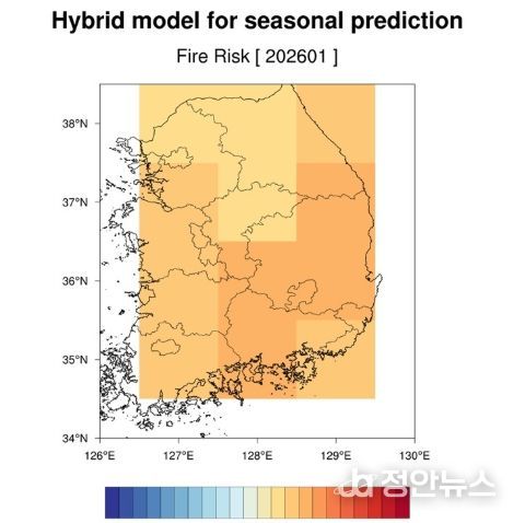 정안뉴스 안정주 기자 | 산림청 국립산림과학원(원장 김용관)은 1월 산불 발생 위험을 장기 예측한 결과(첨부 1), 전국적으로 ‘높음’ 단계가 전망된다고 밝혔다. 이는 과거 30년간의 1월 기록 중 8번째로 위험한 수준으로, 작은 불씨가 대형 화재로 번지지 않도록 각별한 주의가 필요하다.