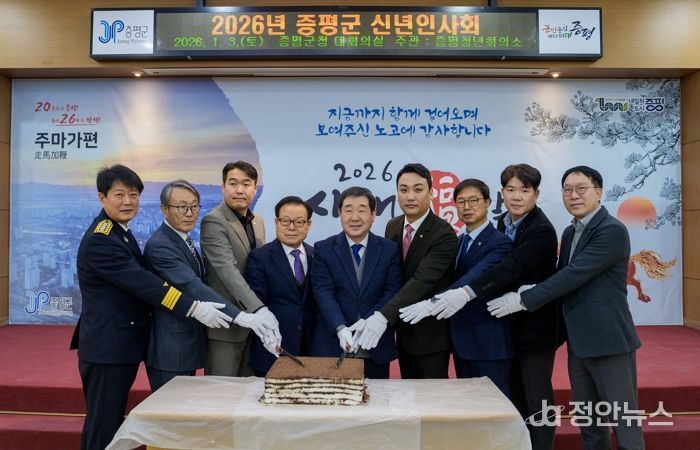 정안뉴스 황은경 기자 | 충북 증평군은 3일 군청 대회의실에서 ‘2026년 증평군 신년인사회’를 열고 지역 주요 기관·사회단체장들이 한자리에 모여 새해 인사를 나눴다고 밝혔다.