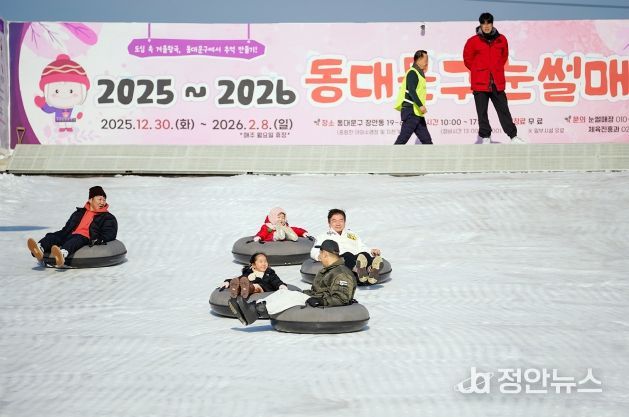 정안뉴스 안정주 기자 | 중랑천을 따라 걷다 보면, 여름이면 물소리로 가득하던 야외수영장 부지가 있다. 겨울엔 텅 비기 쉬운 그 공간이 ‘눈’으로 채워진다. 서울 동대문구가 장안1수변공원 야외수영장 부지(장안동 19-6 일대)에 ‘동대문구 눈썰매장’을 열고, 주민들에게 무료로 개방한다.