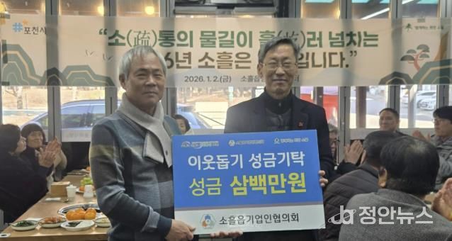 정안뉴스 안정주 기자 | 포천시 소흘읍 행정복지센터는 지난 2일, 소흘읍기업인협의회가 지역 내 취약계층 지원을 위해 성금 300만 원을 기탁했다고 밝혔다.