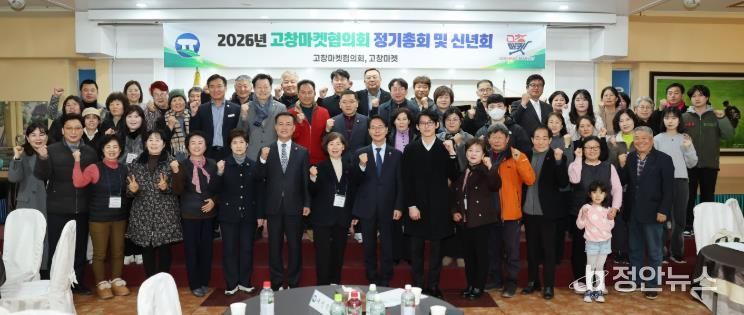 정안뉴스 안정주 기자 | 고창군이 지난 7일 우성회관에서 고창마켓 관계자와 생산자 등 100여 명이 참석한 가운데 ‘2026 고창마켓 신년회’를 개최했다.