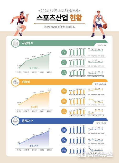 업종별로는 스포츠용품업 매출이 6.4% 증가하며 가장 높은 성장률을 보였고, 스포츠서비스업은 3.6%, 스포츠시설업은 2.6%의 성장률을 기록했다.