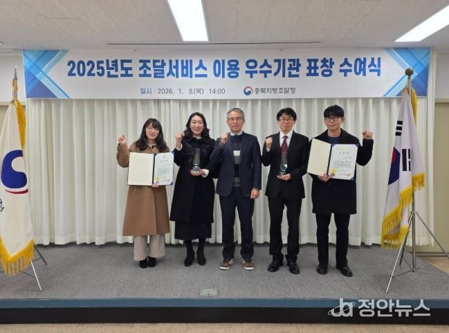 정안뉴스 황은경 기자 | 충주시는 8일 충북지방조달청에서 ‘2025년도 조달서비스 이용 우수기관’으로 선정돼 조달청장상을 수상했다고 밝혔다.