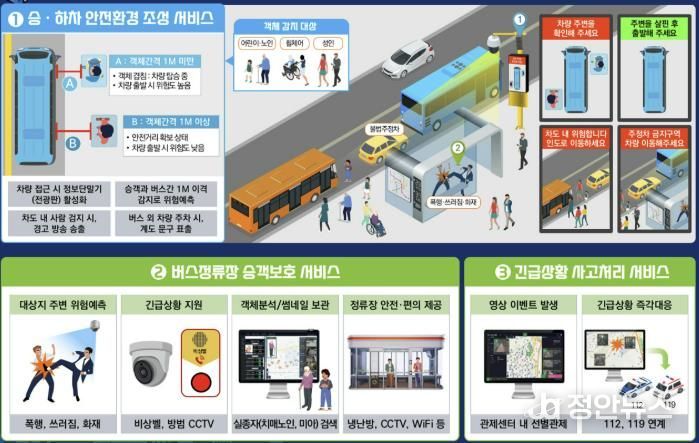 또한 차도에서 보행자가 나타나거나 불법 주정차가 발생하는 경우에도 자동 경고 및 계도 기능이 작동해 정류장 주변 교통 안전을 종합적으로 관리한다.
