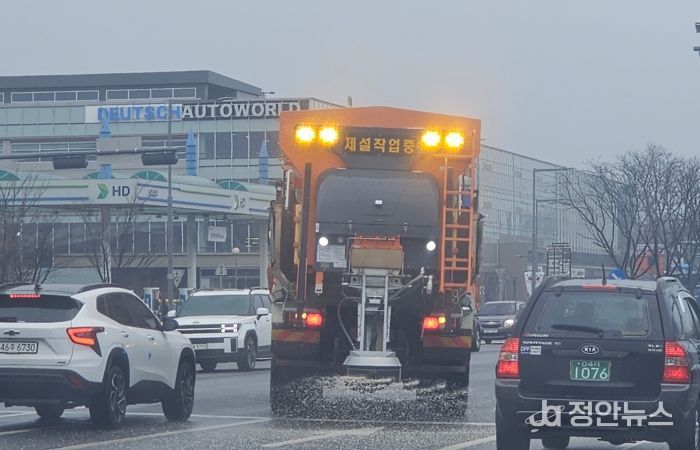 정안뉴스 안정주 기자 | 수원시가 10일 선제적으로 제설제를 살포해 블랙아이스(도로결빙)에 대비했다.