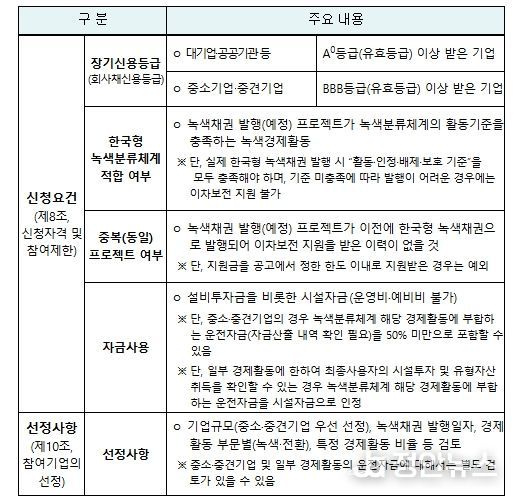 이번 지원사업은 지난해(2025년) 12월 말에 개정된 한국형 녹색분류체계를 반영하여 차세대 저탄소 기술을 폭넓게 지원하고, 자금 지원범위도 넓혀 기업의 수요에 부응하는 탈탄소 투자를 촉진한다.