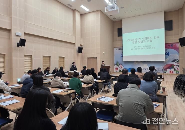 정안뉴스 안정주 기자 | 고창군이 지난 9일 고창군보훈회관 1층 다목적실에서 읍·면 사회복지 업무 담당자 30여 명을 대상으로 2026년 사회복지사업 추진방향 교육과 공유의 시간을 가졌다.