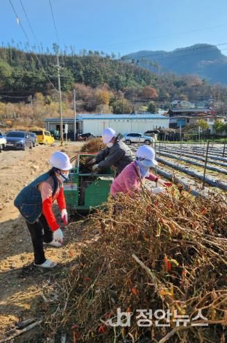 정안뉴스 안정주 기자 | 무주군이 영농 작업 후 발생하는 과수 전지 목(사과, 복숭아, 포도, 머루), 고춧대, 깻대 등을 파쇄해 퇴비로 환원하는 ‘영농부산물 안전처리 지원 사업’을 추진한다.